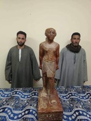 تحت اشراف اللواء خالد شلبي مدير أ من الفيوم تمكنت الخدمة المعينة بالقطاع الاول تامين الطريق الاقليمي – دائرة مركز شرطة طامية اثناء عمل تمركز امني امام محطة تحصيل الرسوم باستيقاف السيارة رقم ( 8631 ف ج ا ( ربع نقل ) ماركة شيفرولية خضراء اللون لفحص تراخيصها الا ان قائدها فر هاربا بالسيارة فقامت القوات بملاحقته حتي تمكنوا من استيقافه وتبين انه يدعي محمد - ا- ج- ص – س 30 – فني صيانة حاسب الي – مقيم قارون – دائرة مركز يوسف الصديق وبرفقته / سيد م- م – م - –س40 – سائق – مقيم المشرك قبلي – دائرة مركز يوسف الصديق . وبتفتيش السيارة عثر بصندوقها الخلفي علي جوال بلاستيك ابيض اللون بداخله تمثال حجري علي شكل انسان نبيتي اللون مدون عليه نقوش فرعونية مثبت علي قاعدة مستطيلة ارتفاعه 1م يشتبه في اثريته حيث تم التحفظ عليه . بمواجهة المتهمان اقرا بحيازتهما للتمثال المضبوط بقصد نقله داخل السيارة لحساب احد الاشخاص ( مجهول الشخصية ) .جاري اتخاذ الاجراءات القانونية اللازمة .