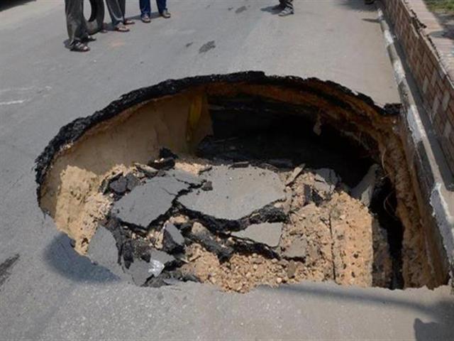 هبوط أرضي بشارع مصطفى كامل بالإسكندرية