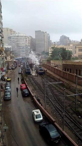 حريق بإحدى عربات ترام الرمل في الإسكندرية بسبب الأمطار