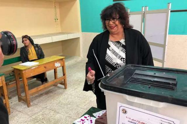 وزير الثقافة تدلى بصوتها في الاستفتاء علي التعديلات الدستورية بمدينة الشيخ زايد