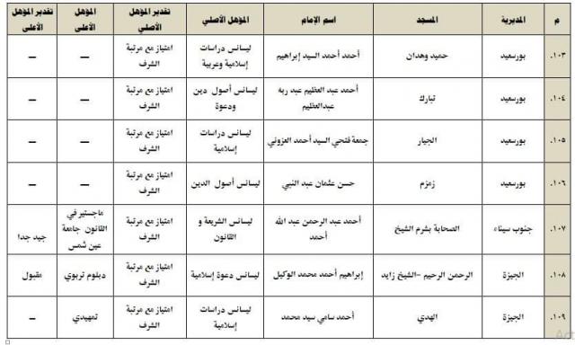 5- الواعظات المعينات بوزارة الأوقاف، وفق الجدول المعلن على الرابط التالي: