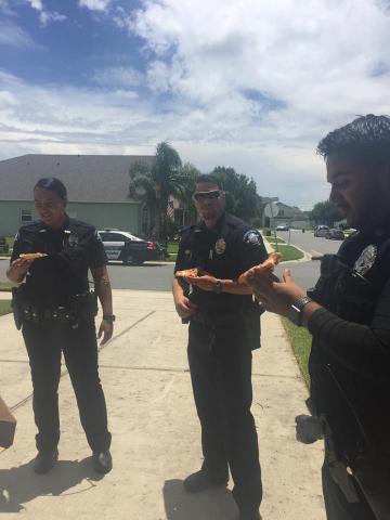 أضافت الأم أنها عندما عادت من العمل وجدت 3 ضباط يدعون موراليس، ميجيا، وهيرنانديز، يدقون الباب ومعهم البيتزا التي طلبها طفلها الصغير مانويل.