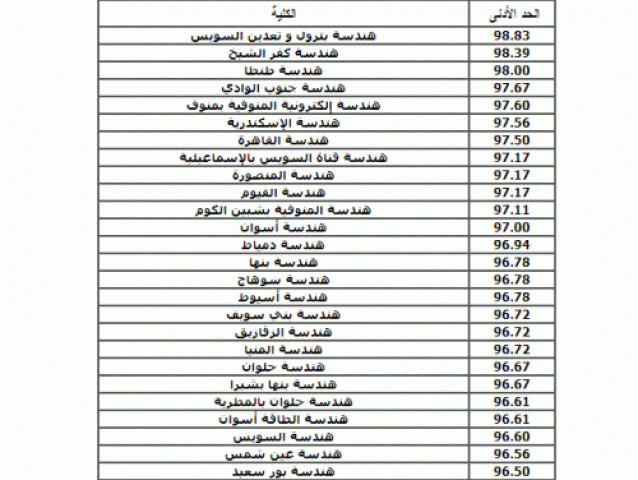 دبلوم المدارس الثانوية الفنية (التجارية – الصناعية – الزراعية – السياحة والفنادق): 60% فأكثر.