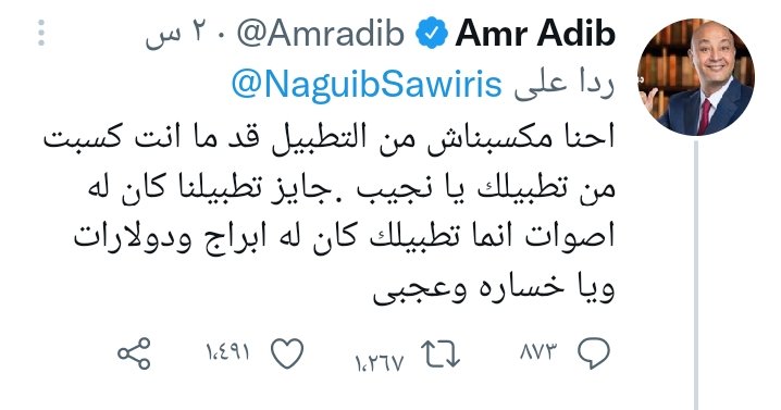 وبعد انتشار «تعليق ساويرس» بشكل واسع علي جميع مواقع السوشيال ميديا قام الإعلامي عمرو أديب بالرد علي سخرية «ساويرس» قائلاً: