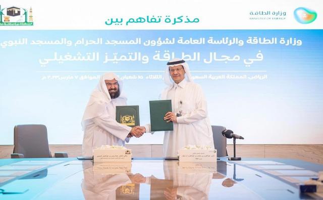 وزارة الطاقة ورئاسة الحرمين الشريفين توقعان مذكرة تفاهم في مجال الطاقة والتميُّز التشغيلي