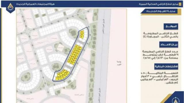 - 155 قطعة بمحور الأراضي المميزة، بمدن الشروق، حدائق أكتوبر، الصالحية الجديدة، برج العرب، الفيوم، بنى سويف الجديدة»