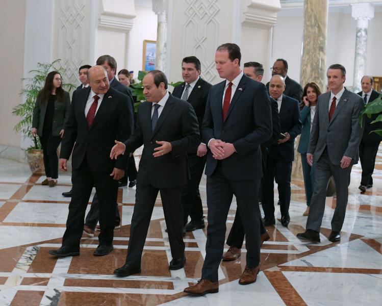 توافق الرئيس عبد الفتاح السيسي ووفد مجلس النواب الأمريكي على خطورة اتساع دائرة الصراع في المنطقة، بما يهدد الأمن والسلم الإقليميين والدوليين، مؤكدين أن حل الدولتين هو الضامن والسبيل لاستعادة وترسيخ الأمن والاستقرار في المنطقة