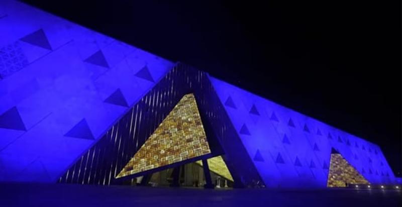 المتحف المصري الكبير يكتسي بلون طيف التوحد
