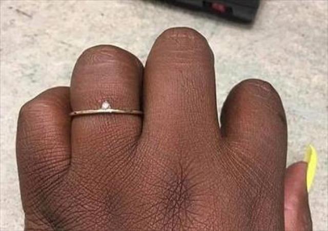 نتقدت عروس بريطانية، خطيبها عبر موقع للتواصل الاجتماعي، بسبب صغر حجم خاتم الخطوبة ذو السوار الذهبي الرفيع والمرصع بقطعة صغيرة من الماس أعلاه، وفقا لموقع "ديلي ميل" البريطاني.