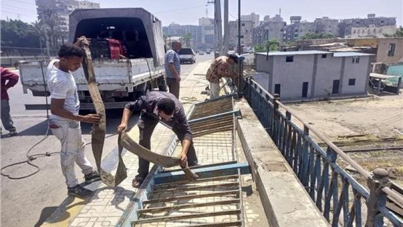 حرص حى غرب الإسكندرية، صباح اليوم السبت، على تركيب وإصلاح فورى لكوبرى أعلى السكه الحديد بمينا البصل بعد إنهيار اجزاء من السور.