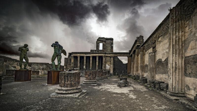 وتم تدمير بعض منازل بومبي ودُفن الآلاف من السكان تحت طبقات من الرماد، عندما ثار بركان جبل فيزوف لأول مرة في عام 79 م.