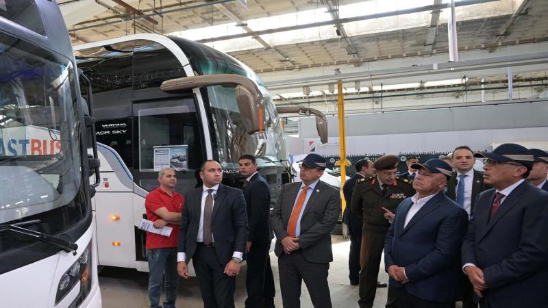 وشهد رئيس الوزراء، تسليم الدفعة الأولى من الحافلات الجديدة للشركة باسم "نصر سكاي" السياحي إلى شركات وزارة النقل، بسعة 49 راكبا وبطول 12 مترا.