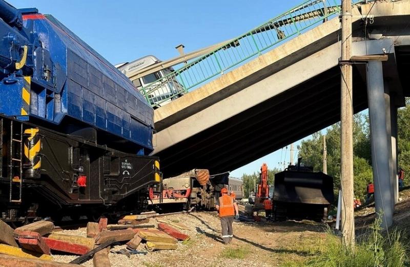 ونقلت وكالة "نوفوستي" عن مصادر في خدمات الطوارئ، أنه كانت هناك 3 مركبات على الجسر لحظة الانهيار، وأن حطام الجسر أصابت القاطرة والعربتين الأوليين للقطار بشكل أساسي.