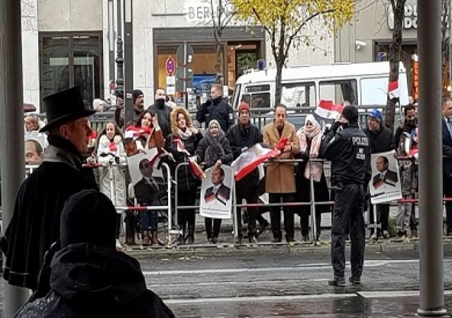 الجالية المصرية بألمانيا تنظم وقفةً للترحيب بالسيسي لدى وصوله مقر إقامته ببرلين