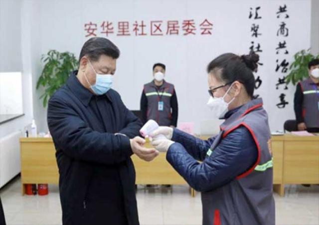 وتفقد الرئيس الصيني، خلال هذه الزيارة، الإجراءات التي اتخذتها السلطات المحلية لمكافحة فيروس كورونا.
