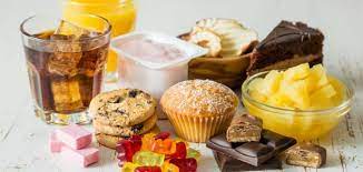 تعتبر السكريات مثل الأطعمة المملحة حيث انها أيضا تعتبر من الاطعمة التي يصعب هضمها مما يتسبب في مشاكل بالهضم وقرحة بالمعدة كما أن كثرة الحلويات تؤدي إلى الإصابة بالتخمة ويجب استبدالها بالعصائر الطبيعية لتجنب زيادة الوزن.