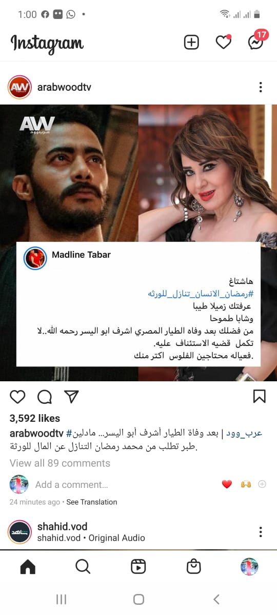 وجهت الفنانه مادلين طبر عبر حسابها على انستجرام ، رساله الى الففنان محمد رمضان تطالبة بالتراجع عن دعوى الإستئناف التى كان حركها ضد الطيار أشرف أبو اليسر ، وجاءت الرسالة كالتالى :