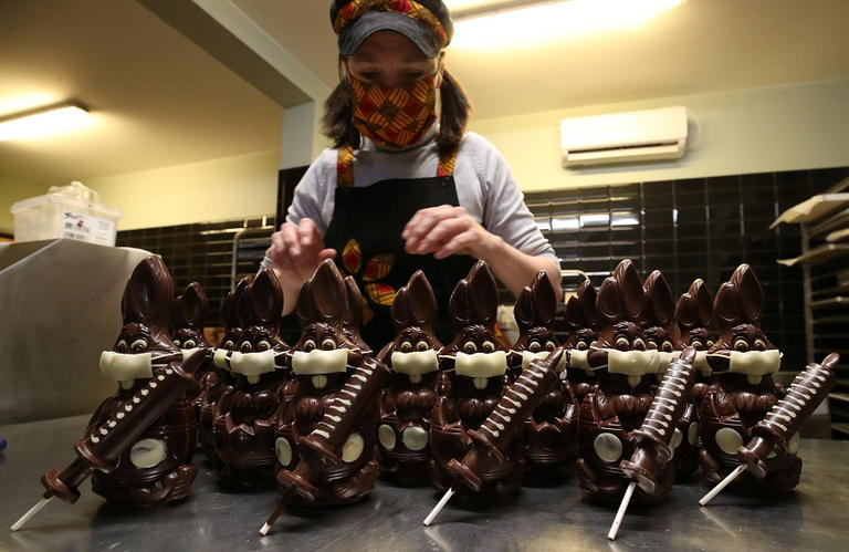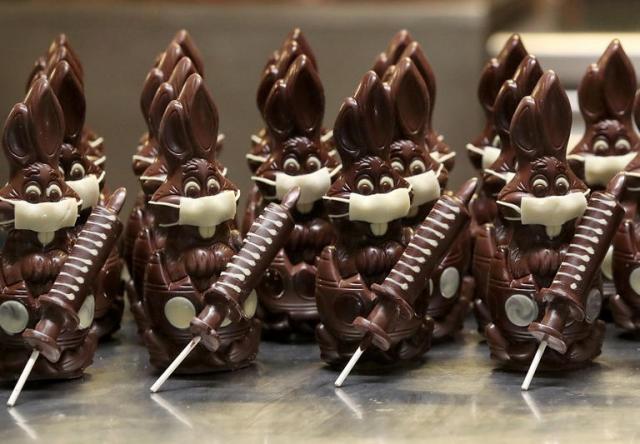 وتعمل الشركة التى وضعت العام الماضي كمامات بيضاء على حلوى في هيئة أرانب، على صنع قوالب كبيرة من الشوكولاتة في شكل لقاحات لمواكبة الاتجاه المتعلق بوباء فيروس كورونا .