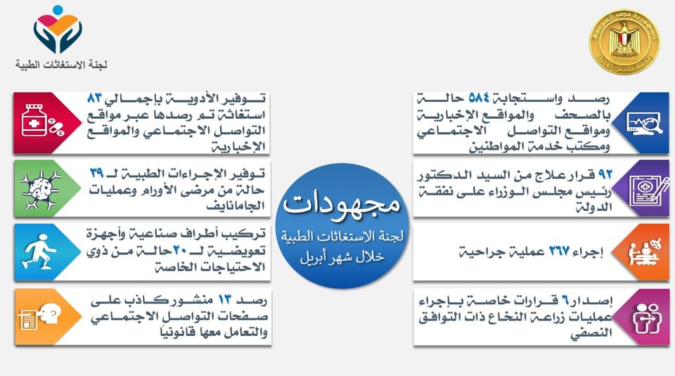 رئيس الوزراء يتابع جهود لجنة الاستغاثات الطبية بمجلس الوزراء في شهر أبريل الماضي