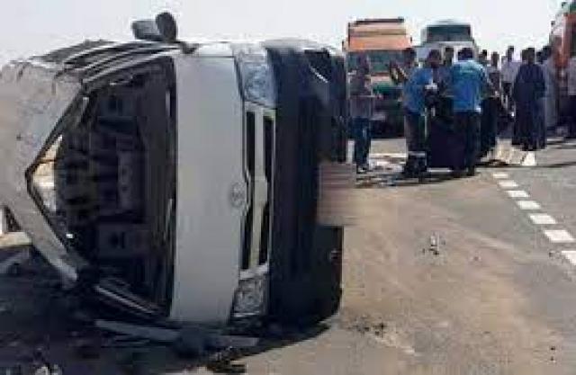 إصابة 11 شخصا فى حادث إنقلاب سيارة بالمنيا