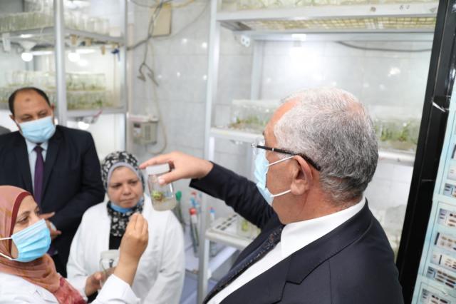 وزير الزراعة يتفقد معمل ابحاث وتطوير النخيل ويوجه بزيادة انتاج الشتلات لخدمة المشروعات القومية